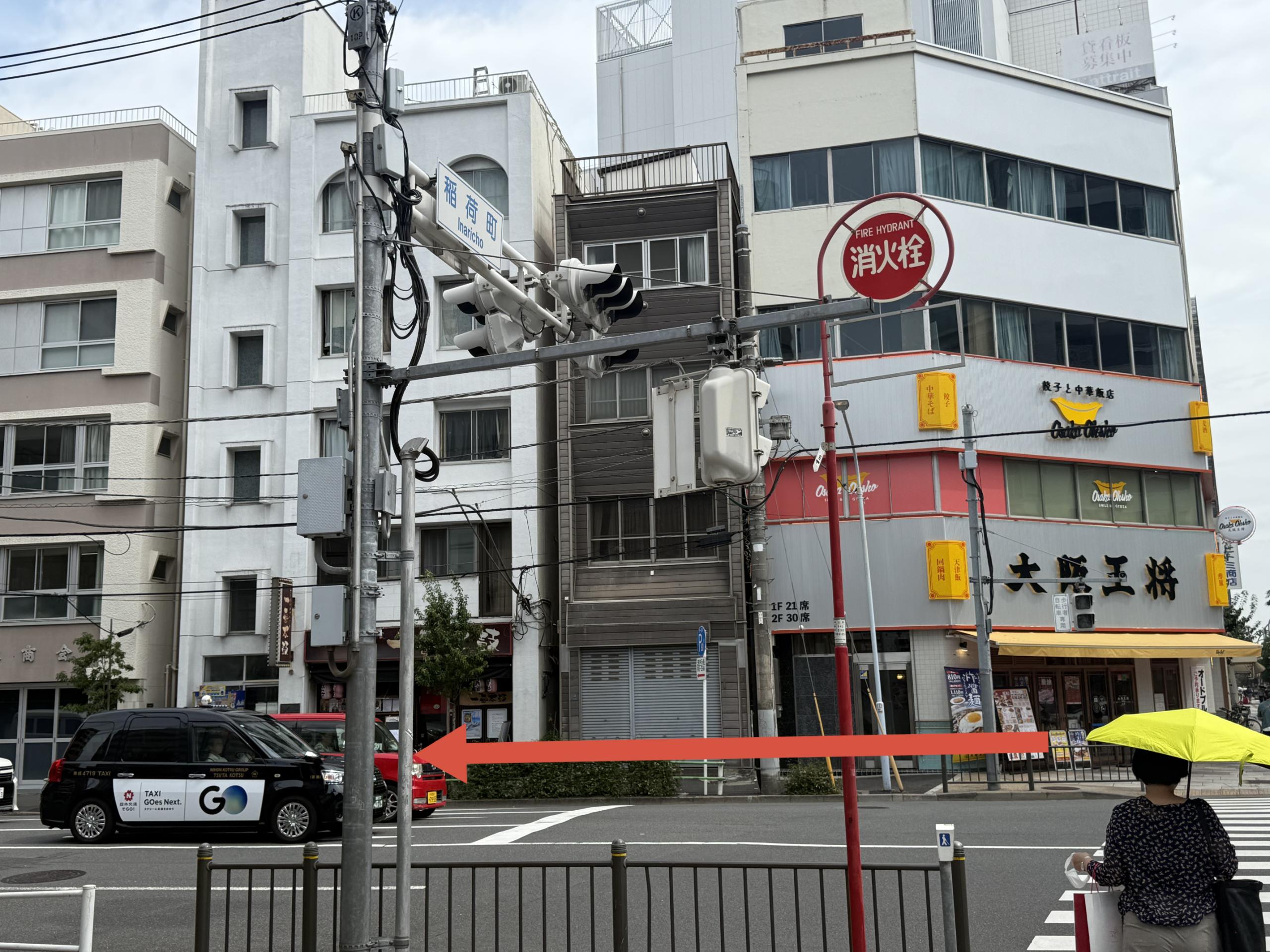 (Opposite is the Osaka Ohsho restaurant. Go straight in the direction of the arrow.)
